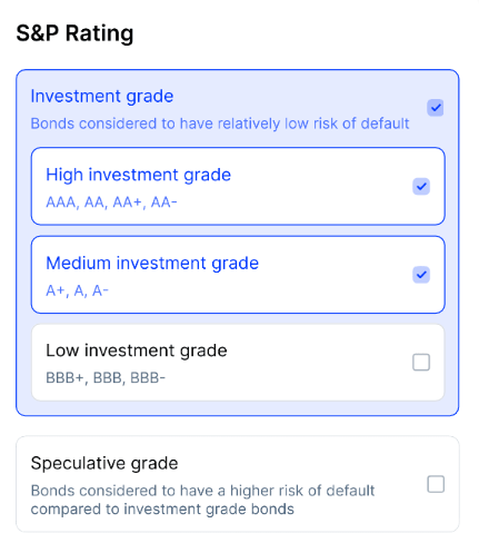 Our sophisticated screener lets you narrow down 40,000+ bonds to match your investment goals with the right yield, risk level, time horizon, and more.